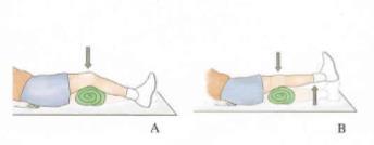 A) Hasta dizinizin altında bir havlu rulosu olacak şekilde oturun.
