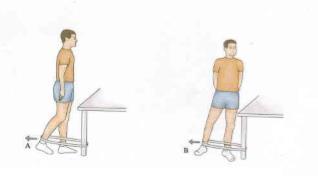 B) 90 derece dönün ve sağlam bacak masa tarafında otacak sekilde durun. Hasta bacağınızı dışa doğru açın. 3 set, 10 tekrar yapın.