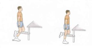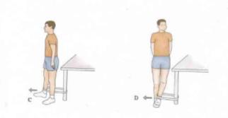A) Sağlam bacağınız üzerinde yüzünüz masaya dönük ve diziniz hafif bükük olarak durun. Bu pozisyonda dururken hasta bacağınızı geriye doğru itin. 3 set, 10 tekrar yapın.
