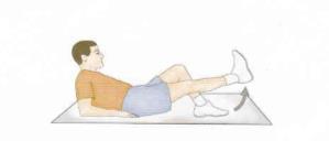 bacak düz, diğer bacak bükük olacak şekilde uzanın. Hasta taraf topuk