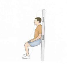 Sırtınızı duvara dönüp ayaklarınızı duvardan 30 cm. ileriye koyun ve omuz genişliğinde açın.Belinizi düz olacak şekilde duvara yaslayın ve kalçanızı aşağı doğru kaydırın. Dizleriniz ....... derece olunca durun. Bu pozisyonda 5 saniye kalın, sonra başlangıç pozisyonuna dönün. Günde ..... kez, ..... tekrar yapın.